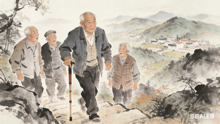 往年陈大爷走到半山腰就得歇三回,今年拄着新拐杖,竟一口气冲到山顶,连气都不喘。